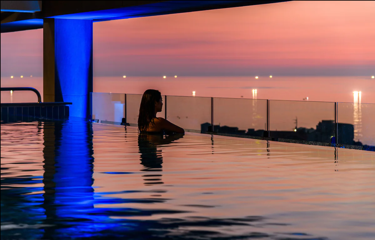 루프탑 온수풀에선 플로팅 조식도 즐길 수 있습니다. 사전 예약 시