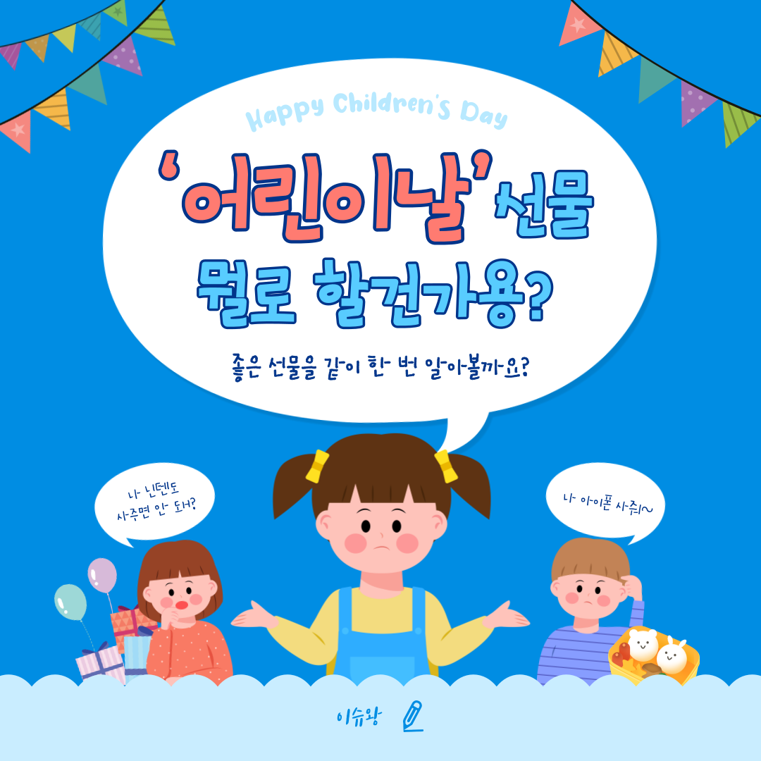 올해도 어김없이 어린이날이 다가왔다. 선물이란 선물은 이미 다 사준 것 같은데